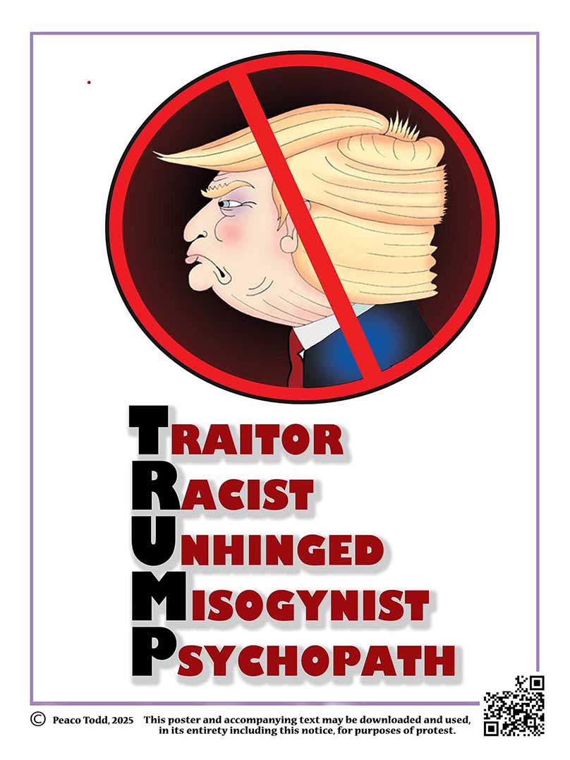 Peacotoons political posters are free to download and print. I hope to see them at rallies across the country as we say ‘no to fascisim.’ And ‘yes to democracy.”